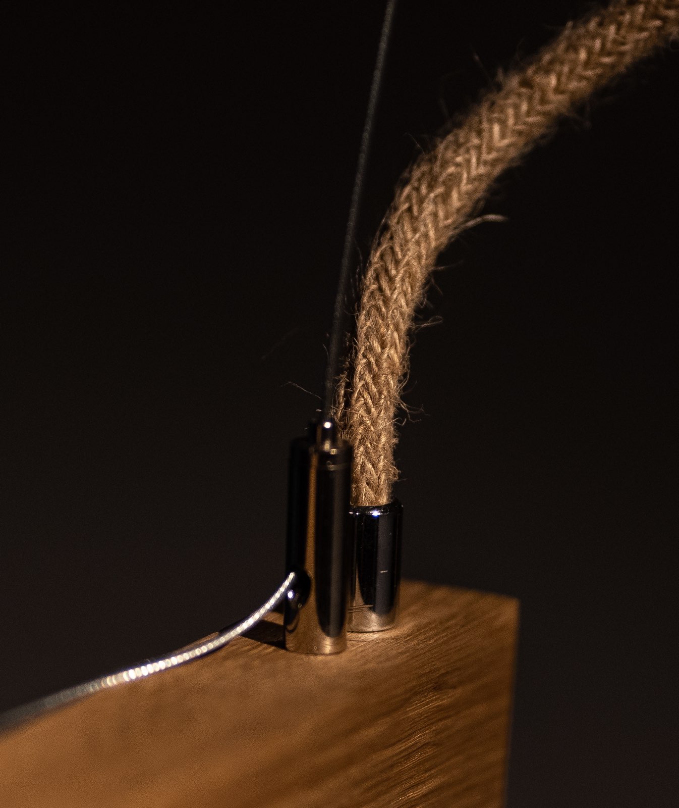 Lampa zrobiona jest z wysokogatunkowego drewna dębowego klasy A/B. Jego cechą charakterystyczną jest widoczny układ naturalnych sęków, co sprawia, że każda lampa jest wyjątkowa i niepowtarzalna.