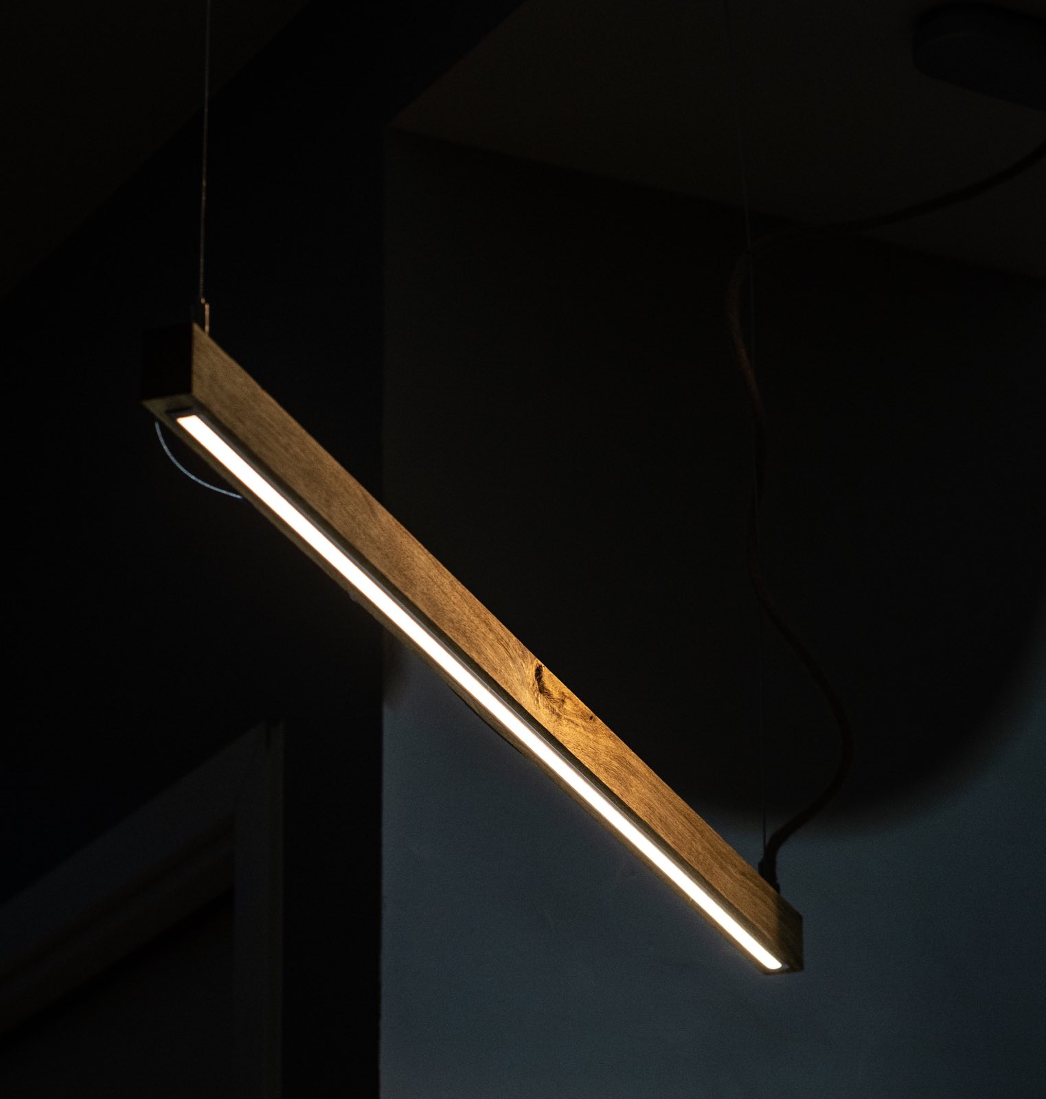 Oak lamp to minimalistyczne oświetlenie, które nadaje wnętrzom ciepłego i wyjątkowego charakteru. Wykonana jest z dębowej deski z widocznymi naturalnymi sękami, co sprawia, że każda lampa jest jedyna w swoim rodzaju i niepowtarzalna.